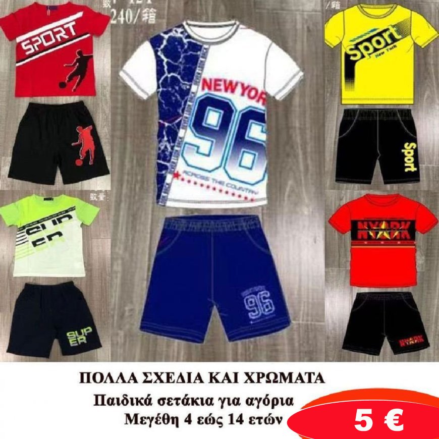 Παιδικά καλοκαιρινά σετάκια για αγόρια Μεγέθη 4 εώς 14 σε διάφορα σχέδια και χρώματα