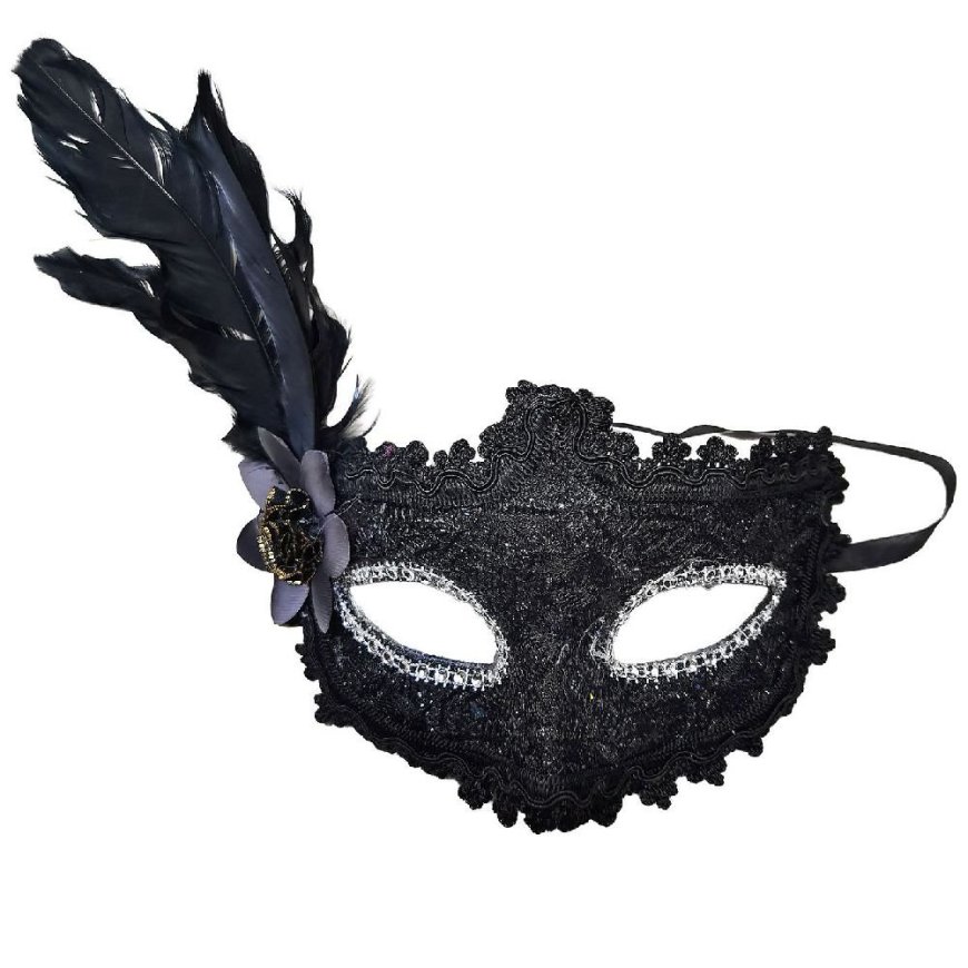 3-2674 Μάσκα Κοκκάλινη με Φτερό - Δαντέλα 19χ22cm