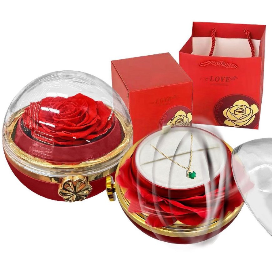 22-3096 Παντοτινό Τριαντάφυλλο σε Κόκκινο Κουτί Περιστρεφόμενο o11cm