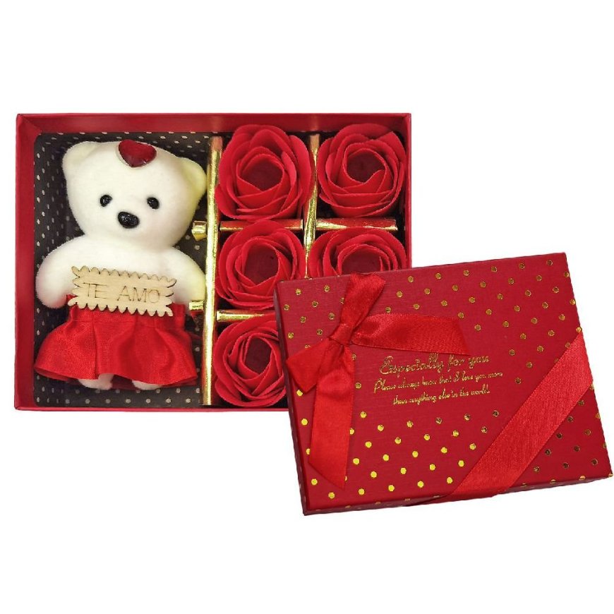 22-3053 Κουτί με 6 Τριαντάφυλλα - Αρκουδάκι 15x11.5x4.5cm