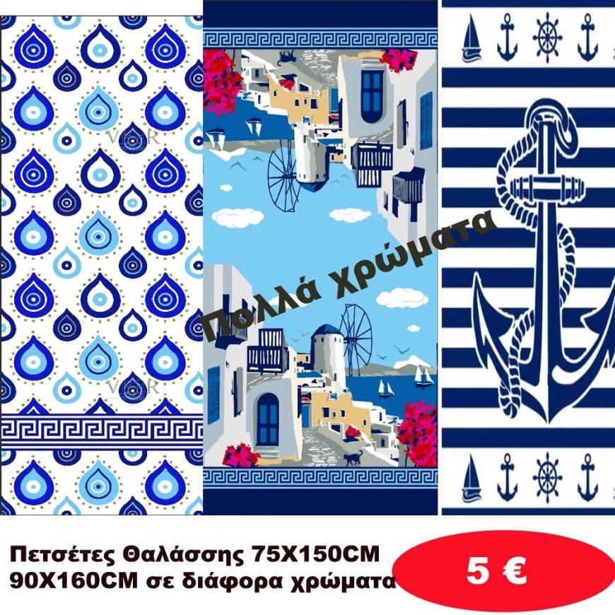 Πετσέτες θαλάσσης 75Χ150 σε διάφορα χρώματα