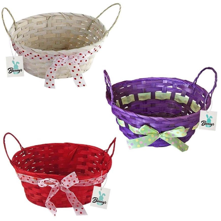 73-1233 Καλάθι Μπαμπού Οβάλ με Φιόγκο 23x18x10cm -Υ10cm-
