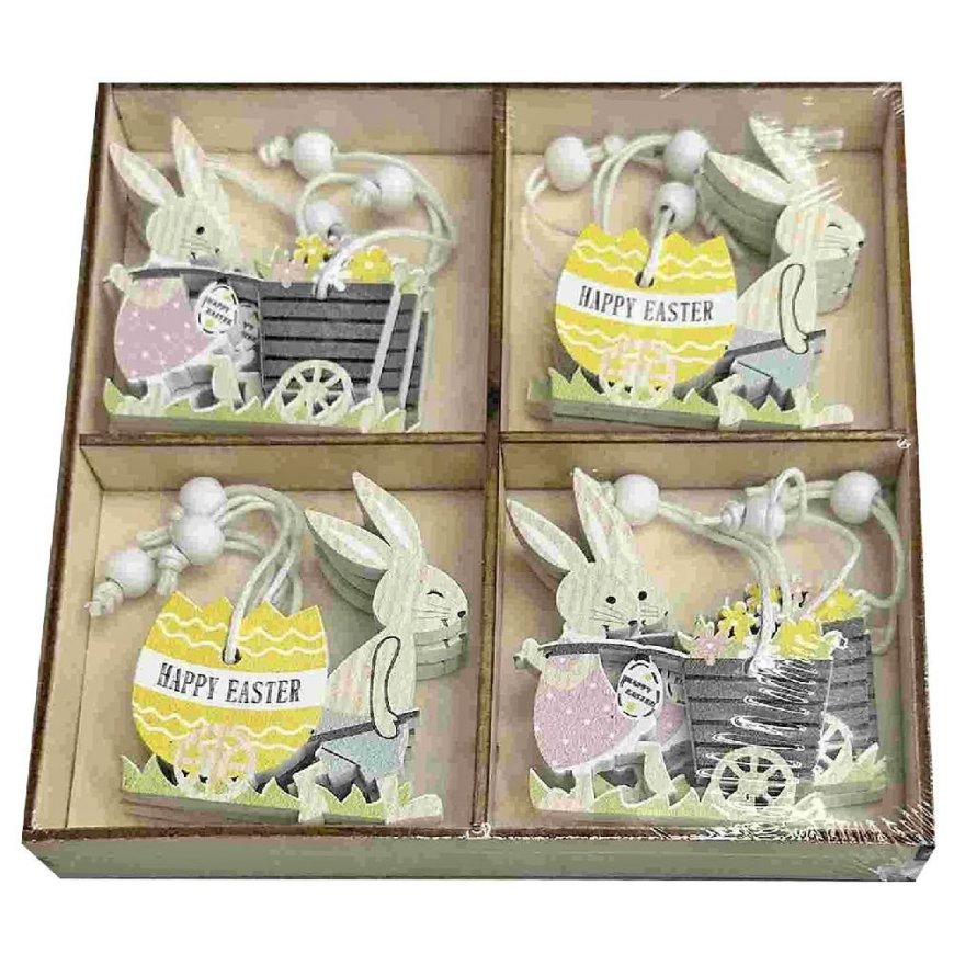 73-2084 Νάνοι Ξύλινοι Κρεμαστοί με Αυγό και Χειράμαξα σετ-12τεμ Ξύλινο κουτί-13x13cm