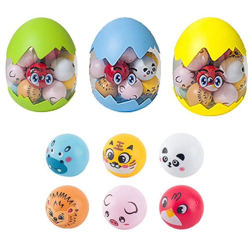 73-1973 Αυγό σετ 18 tem Pull Back Μπαλάκια Σχέδιο Ζωάκια ΑΥΓΟ-19x15. ΖΩΑΚΙ-4.8x4cm
