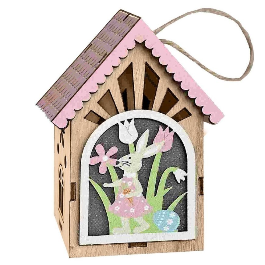 73-2177 Σπιτάκι Κρεμαστό ροζ Σκεπή KAI Λαγός 11x8x6cm