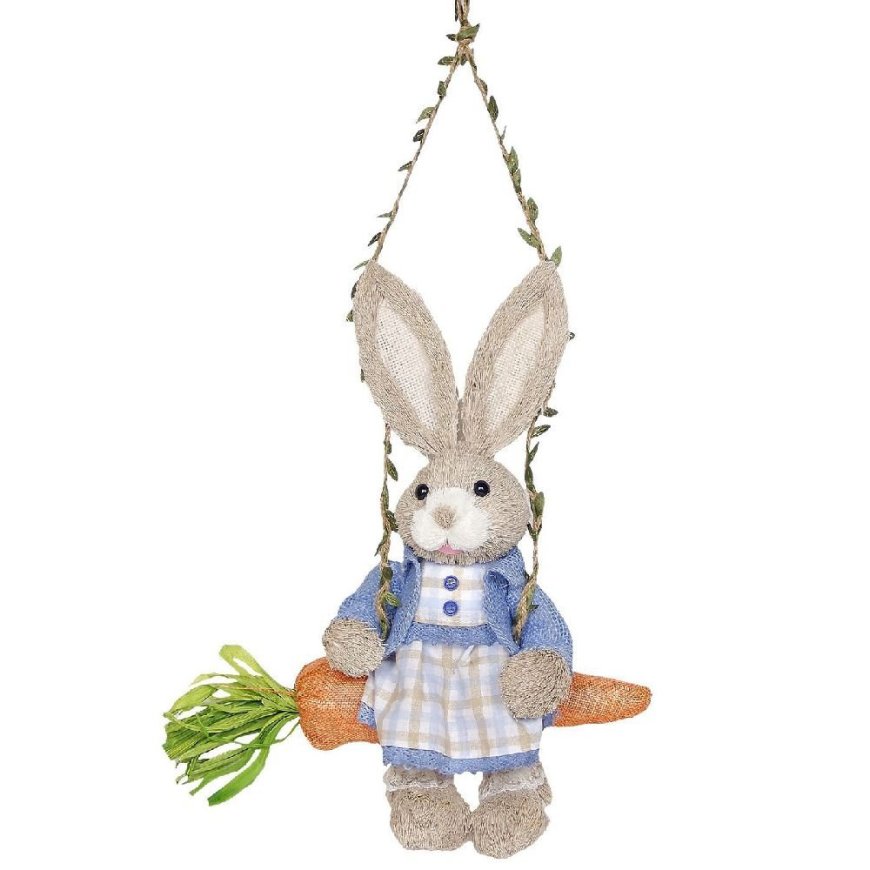73-2168 Λαγός Ψάθινος Κούνια Καρότο Κορίτσι 35x30x11cm
