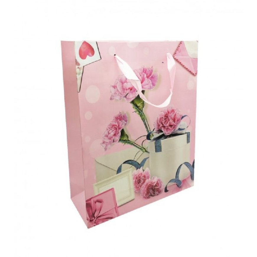 1214-16 ΧΑΡΤΙΝΗ ΣΑΚΟΥΛΑ ΔΩΡΟΥ ΡΟΖ 12ΤΜΧ 32X26X10CM