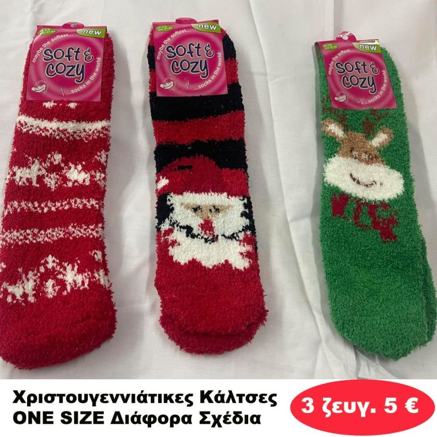 ΠΑΚΕΤΟ ΜΕ 3 ΖΕΥΓΗ. Χριστουγεννιάτικες κάλτσες φλις ONE SIZE 36-41 σε διάφορα σχέδια
