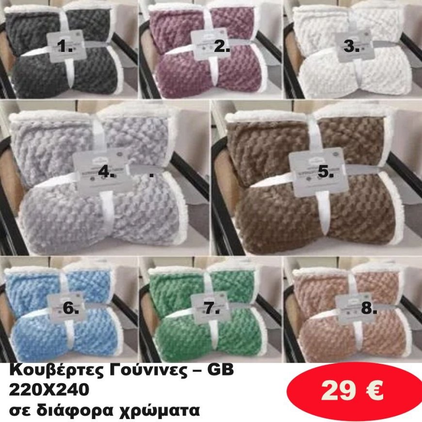 Κουβέρτα γούνινη 220Χ240 σε διάφορα χρώματα