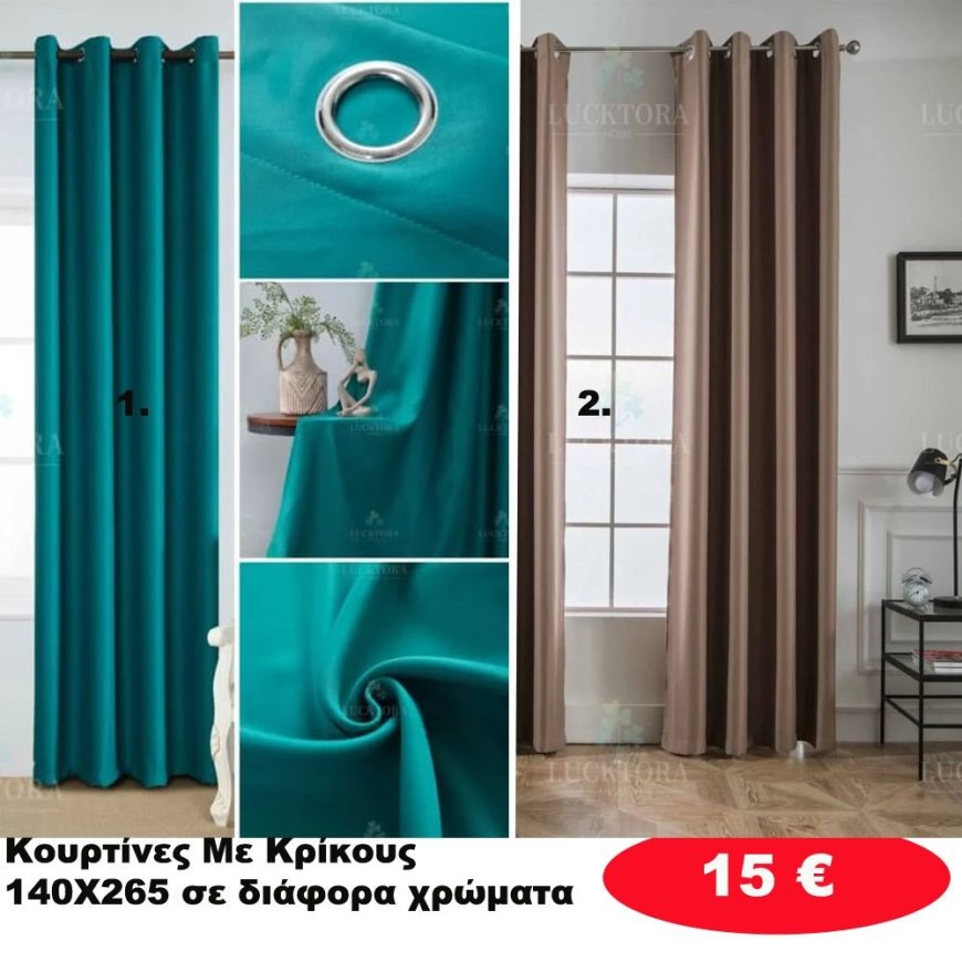 Κουρτίνες με κρίκους 140X265 σε διάφορα χρώματα