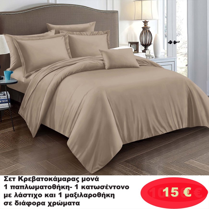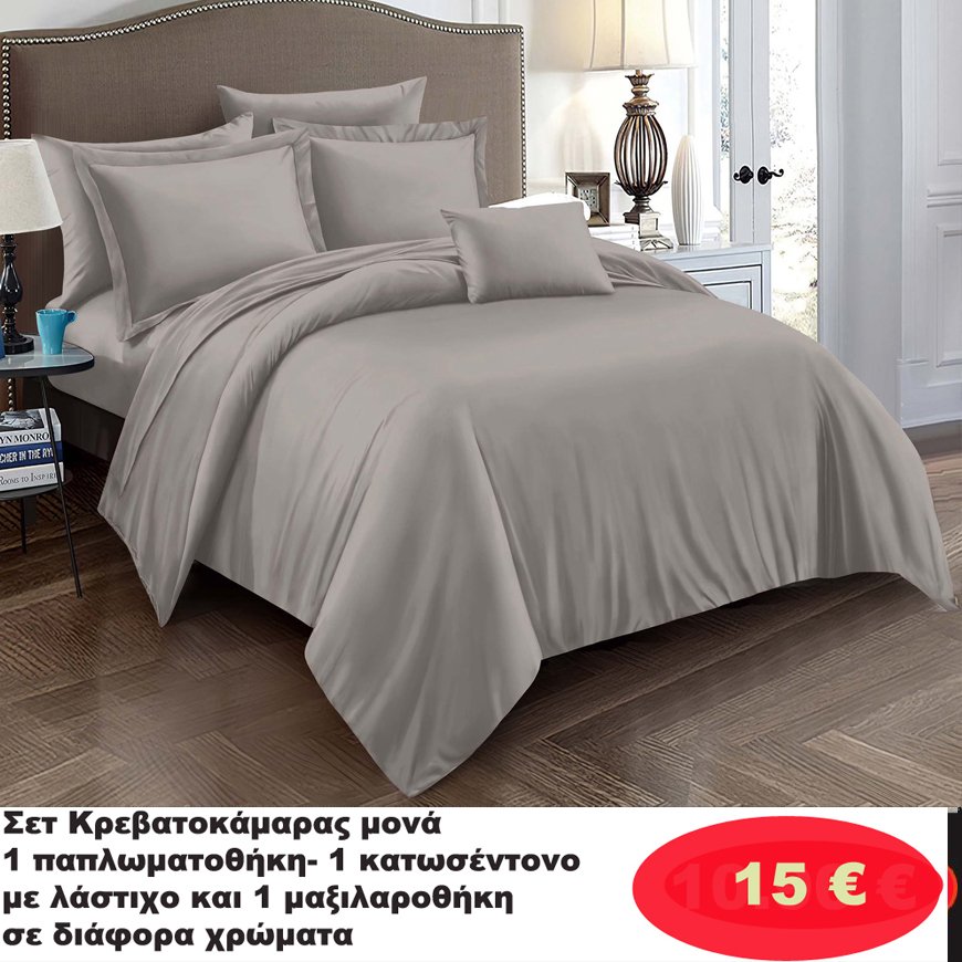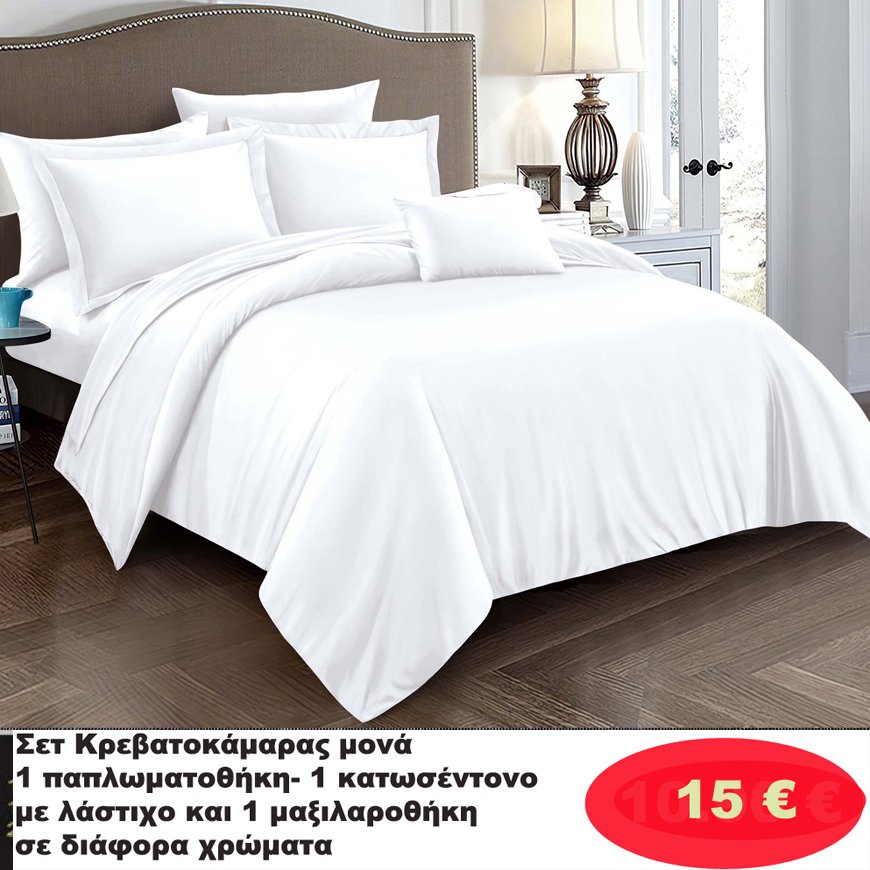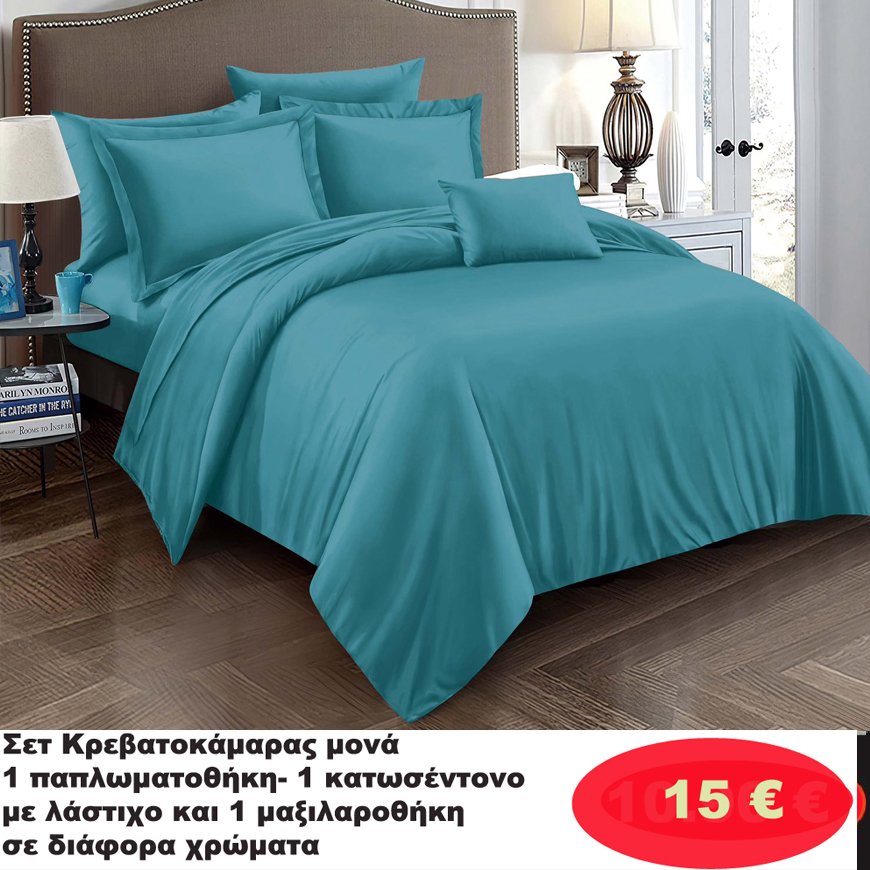 ΣΕΤ Κρεβατοκάμαρας ΜΟΝΑ -Σεντόνι με λάστιχο-Παπλωματοθήκη-Μαξιλαροθήκη σε διάφορα χρώματα