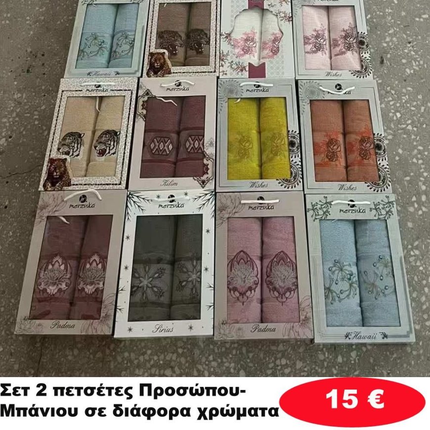 Σετ 2 Πετσέτες προσώπου-μπάνιου σε κουτάκι δώρου σε διάφορα χρώματα