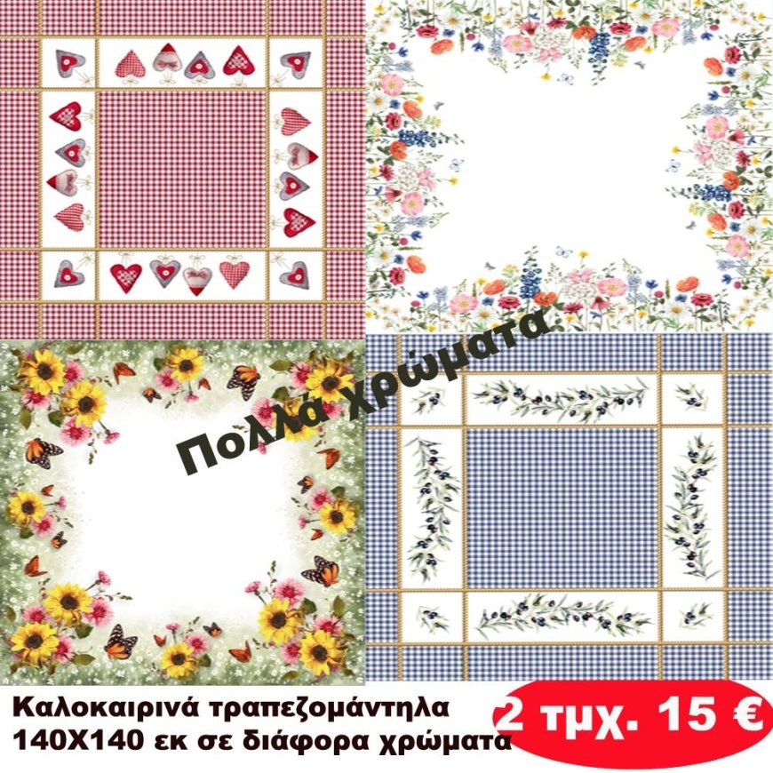 Πακέτο με 2 τμχ. Καλοκαιρινά τραπεζομάντηλα 140Χ140 σε διάφορα χρώματα