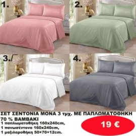 Σετ κρεβατοκάμαρας μονά 1 τμχ. 1 κατωσέντονο με λάστιχο 160Χ240-1 πανωσέντονο 160Χ240 και 1 μαξιλαροθήκη 50Χ70 σε διάφορα χρώματα