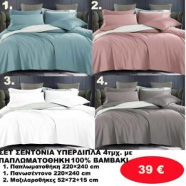 ΣΕΤ Σεντόνια ΥΠΕΡΔΙΠΛΑ 4 τμχ. 100 ΒΑΜΒΑΚΙ ΜΕ ΠΑΠΛΩΜΑΤΟΘΗΚΗ -1 παπλωματοθήκη-1 πανωσέντονο -και 2 μαξιλαροθήκες σε διάφορα χρώματα