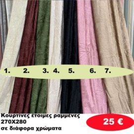 Κουρτίνες έτοιμες ραμένες 270Χ280 σε διάφορα χρώματα