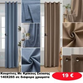 Κουρτίνες με κρίκους ΣΚΙΑΣΗΣ 140X265 σε διάφορα χρώματα