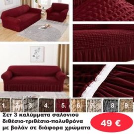 ΣΕΤ 3 Καλύμματα Σαλονιού Διθέσιο-τριθέσιο-πολυθρόνα με βολάν σε διάφορα χρώματα