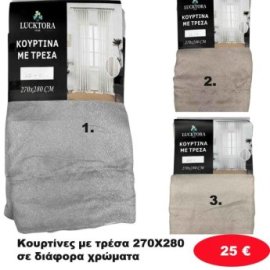 Κουρτίνες με τρέσα 270Χ280 σε διάφορα χρώματα