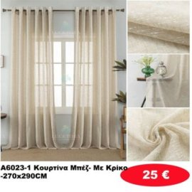 Κουρτίνες με κρίκους μπεζ 270Χ290