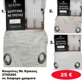 Κουρτίνες με κρίκους 270Χ265 σε διάφορα χρώματα