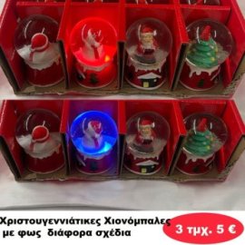 ΠΑΚΕΤΟ ΜΕ 3 ΤΜΧ. Χριστουγεννιάτικα Διακοσμητικες Χιονόμπαλες μπαταρίας με φως σε διάφορα σχέδια