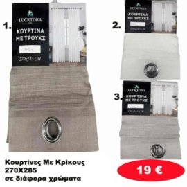 Κουρτίνες με κρίκους 270Χ280 σε διάφορα χρώματα