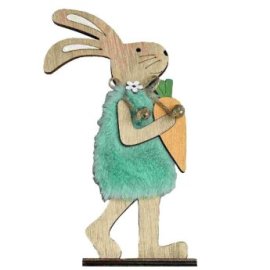 73-2181 Λαγός Ξύλινος Διακοσμητικός με Γούνα Τυρκουάζ και Καρότο 25x8x3.5cm