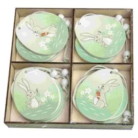 73-2185 Αυγα Ξύλινα Κρεμαστά Πράσινα με Λαγό σετ-12τεμ Ξύλινο κουτί-13x13cm