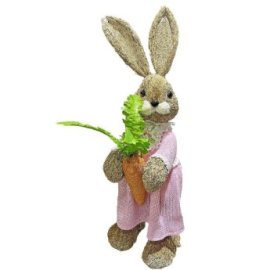 73-2165 Λαγός Όρθιος ροζ Φόρεμα Ψάθινος Κρατάει Καρότο 60x21x20cm
