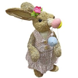 73-2166 Λαγός Όρθιος ροζ Φόρεμα Ψάθινος Κρατάει 3 Αυγα 48x19x17cm
