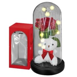 22-3090 Αρκούδος με Τριαντάφυλλο σε Γυάλα με φως 22x11cm