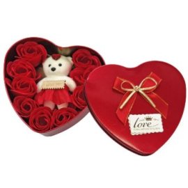22-3051 Κουτί Καρδιά Μεγάλη 10 Τριαντάφυλλα - Αρκούδο 16x15x5cm