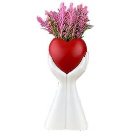 22-3028 Διακοσμητική Γλάστρα σε Παλάμη με ?νθη Κόκκινη Καρδιά 27x10cm