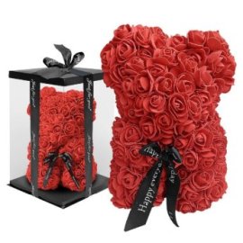 22-2984 Αρκουδάκι Κόκκινο από Τεχνητά Τριαντάφυλλα σε Κουτί Αρκουδάκι - 34cm