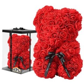 22-2962 Αρκουδάκι από Τεχνητά Τριαντάφυλλα σε Κουτί Αρκουδάκι - 23cm. κουτί - 25cm