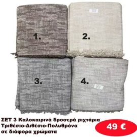 Σετ 3 καλοκαιρινά δροσερά Ριχτάρια για τριθέσιο-Διθέσιο και Πολυθρόνα σε διάφορα χρώματα