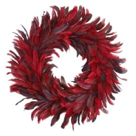 93-3884 Στεφάνι με Φτερά KAI Πούπουλα Κόκκινο o50cm