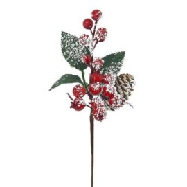 93-3877 Κλαδί με γκι Χιονισμένα KAI Κουκουνάρι 27cm