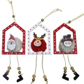 93-4012 Στολίδι Ξύλινο Σπιτάκι με Φουντωτή Μπάλα 18x7cm