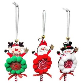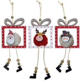93-4015 Στολίδι Ξύλινο Δωράκι με Φουντωτή Μπάλα 18x10cm