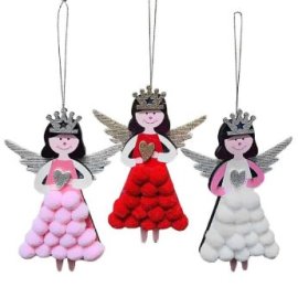 93-4017 Στολίδι Ξύλινο Αγγελάκι με Φουντίτσες 14x10cm