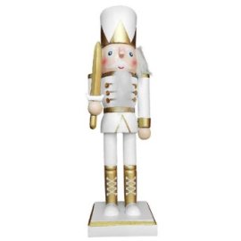 93-3967 Στρατιώτης Ξύλινος Καρυοθραύστης Χριστουγέννων Λευκός-Χρυσός 25cm