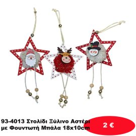 93-4013 Στολίδι Ξύλινο Αστέρι με Φουντωτή Μπάλα 18x10cm