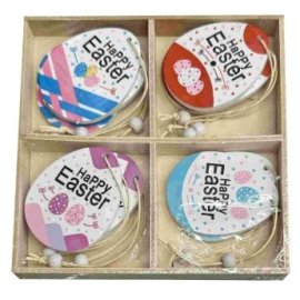 73-2184 Αυγα Ξύλινα Κρεμαστά Happy Easter σετ-12τεμ Ξύλινο κουτί-13x13cm