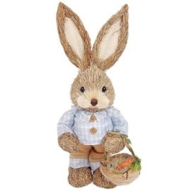 73-2163 Λαγός Όρθιος Ψάθινος Γαλάζιο Πουκάμισο Κρατάει Καλάθι 33x13x11cm