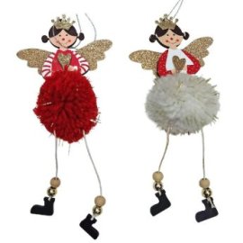 93-4011 Στολίδι Ξύλινο Αγγελάκι με Φουντωτή Μπάλα 20x9cm
